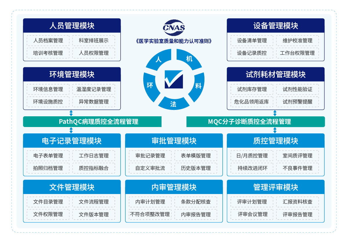 朗珈PCNAS实验室认可管理平台是一款基于CNAS认可标准体系开发的科室管理系统,涵盖“人机料法环”管理、体系管理、内审管理、管理评审、多级审批跟踪、电子记录、质控管理及体系文件管理模块,助力科室高效满足CNAS认可要求,提升质量管理与合规水平。